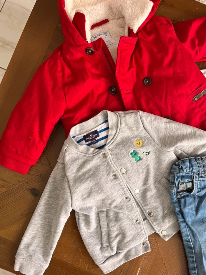 Lot 12 mois garçon - 1 manteau vertbaudet chaud : porté une fois - 1 veste sergent major - 1 jean - 1 pull #jp_01garcon12mois #bebe12mois #lotgarçon12mois