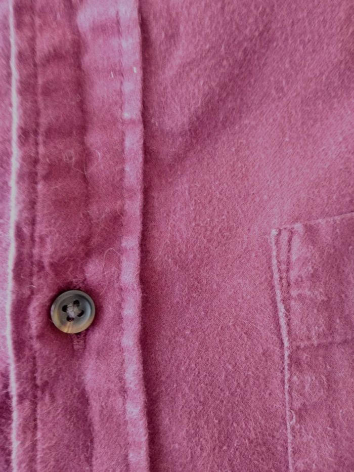 Chemise Uniqlo, en coton épais et très doux, dans les tons bordeaux - lie de vin. Manches longues, fermées par des petits boutons marrons, 1 poche poitrine. Le coton présente quelques bouloches, mais elle reste en bon état