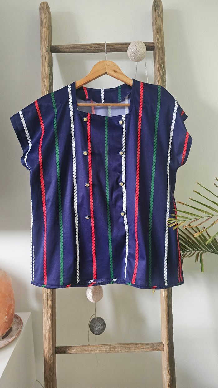 Blouse Vintage taille 38/40 M/L Attention petit défaut cf photo sur une épaule Une couturière pourra repasser le fil dessous sans problème (pas de trou)