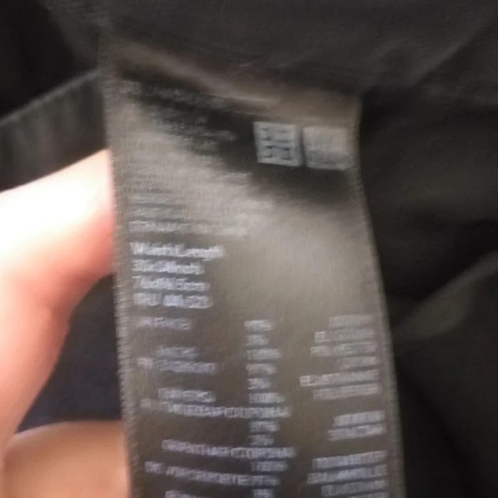 Pantalon chino homme Uniqlo - Taille 31x32 Couleur : noir Coupe : ajustée Marque : Uniqlo Taille : 31 (US) / Longueur : 32, convient pour un 42 français Matière : coton majoritaire, légèrement stretch pour plus de confort État : très bon état, une petite tache a noter ( voir photo)