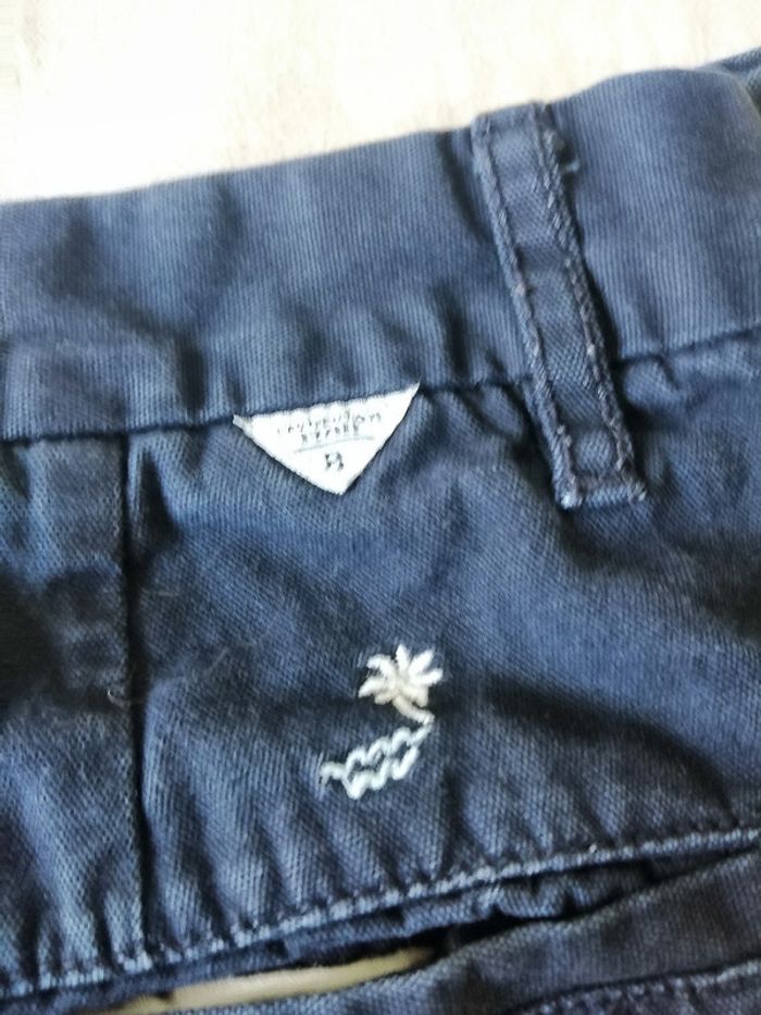 Short bleu à motifs Bizzbee – Taille 40 Taille : 40 (EU) État : très bon état Couleur : bleu marine Motif : petits palmiers et ananas brodés en blanc