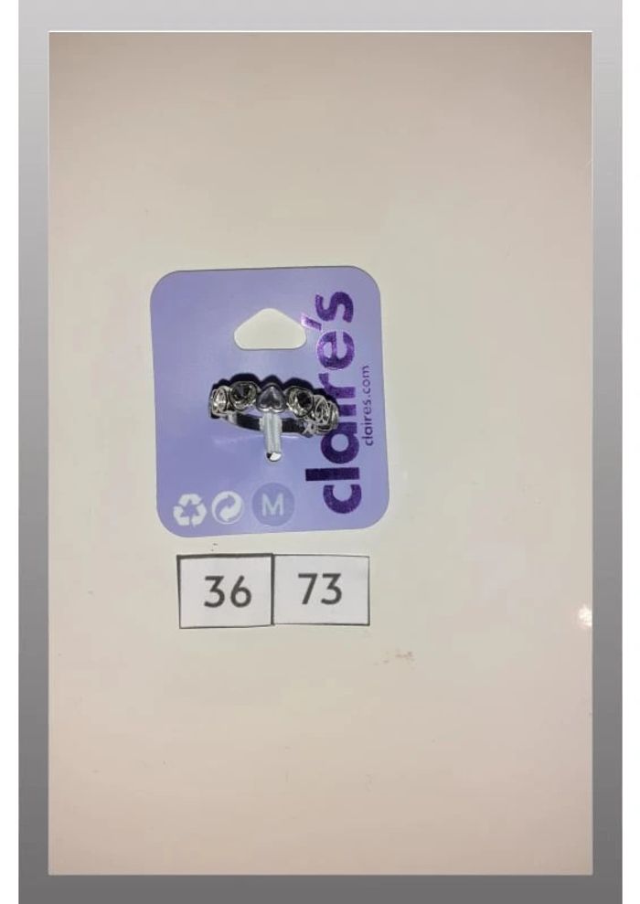 Bague argentée avec des coeurs collés tout le long 1 sur 2 avec un faux diamant à l’intérieur et 1 coeur sur 2 est à l'envers Taille M Claire's valeur 7,99