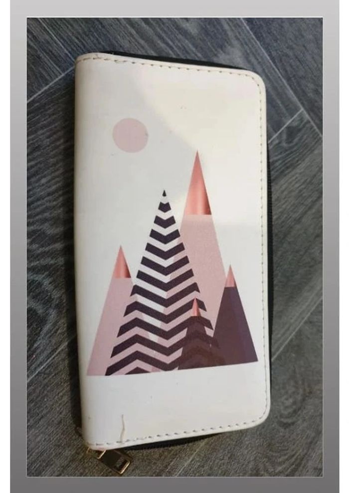 Porte monnaie/carte/billet en simili cuir blanc motif pyramide rose/mauve 19x10 cm - photo numéro 1