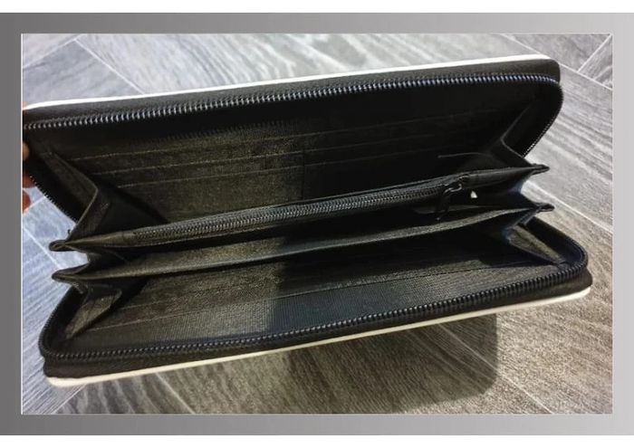 Porte monnaie/carte/billet en simili cuir blanc motif pyramide rose/mauve 19x10 cm - photo numéro 2