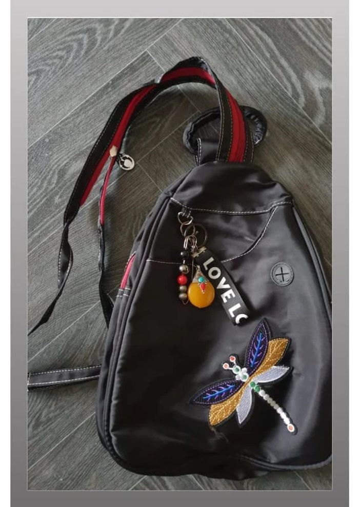 Sac à main/sac à dos noir motif libellule prise USB 26x26 cm - photo numéro 1