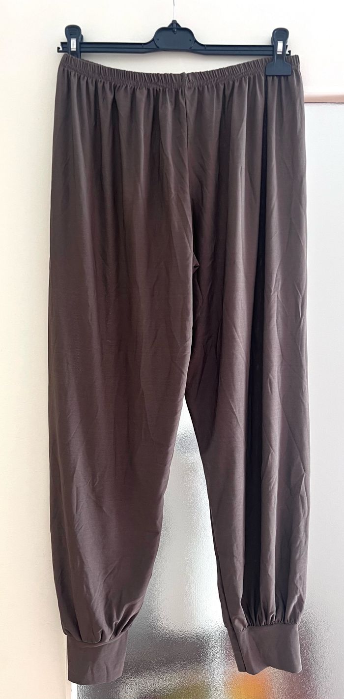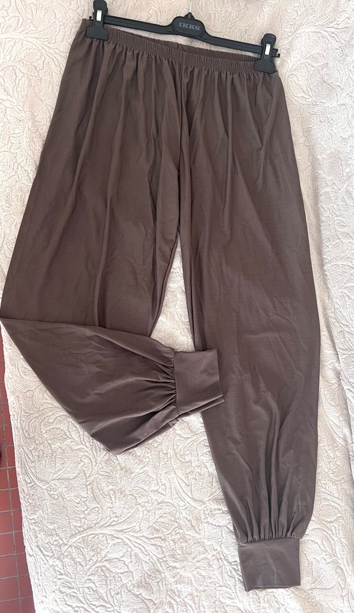Pantalon léger fluide Taille 40 (convient également à la taille 38) Pas d'étiquette de taille Coloris marron 98 cm de longueur Bas resserré Taille élastique Maison non fumeur et sans animaux Je vends d'autres pantalons 📩Je réponds rapidement aux messages 📦Envoi rapide et soigné
