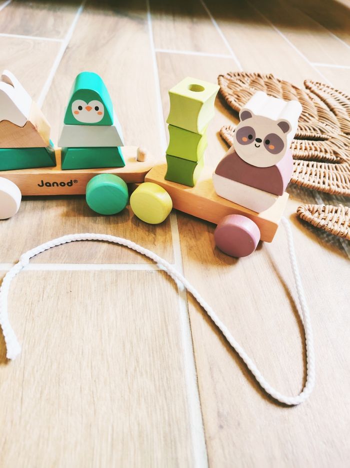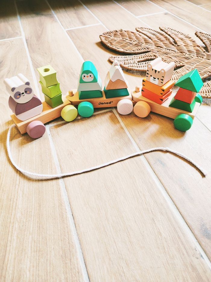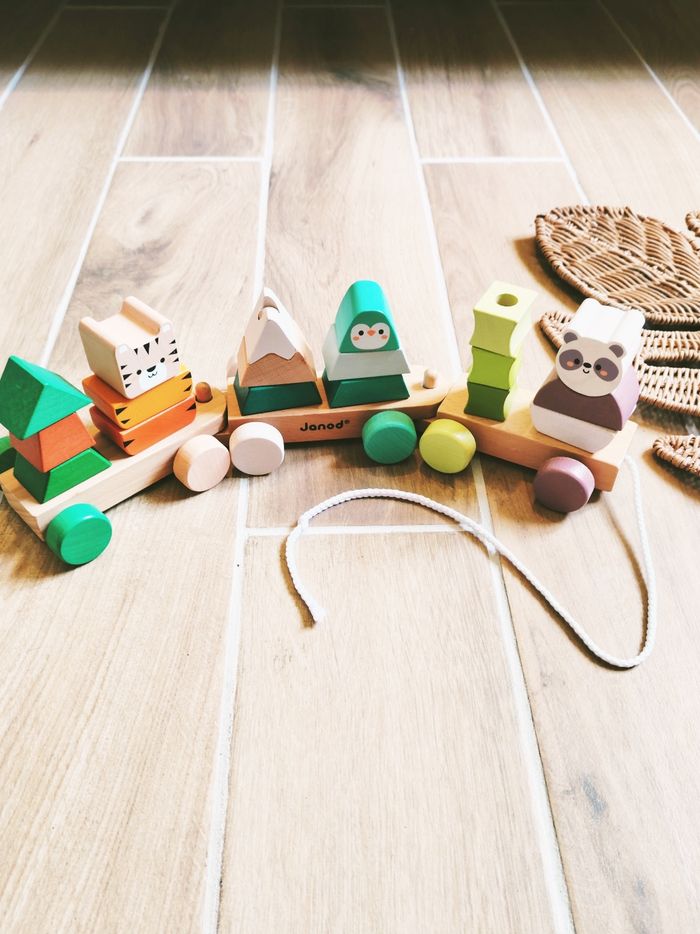 🌲Train La balade des animaux de la forêt à blocs/formes à empiler en bois marque Janod - photo numéro 1