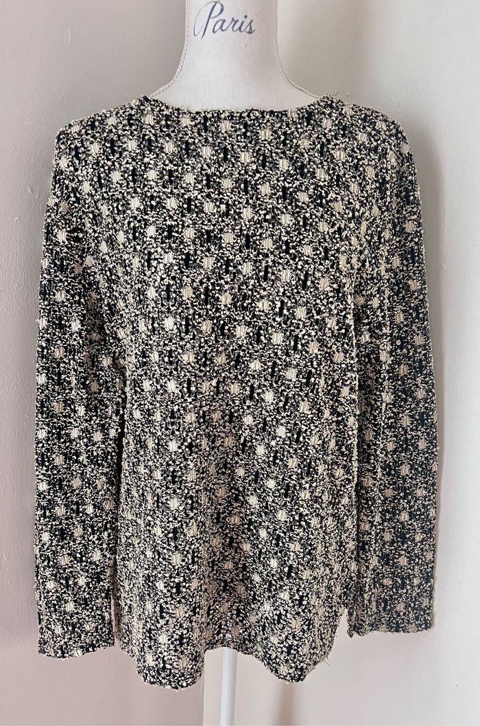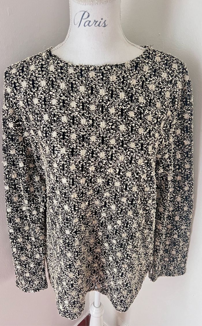 Pull, haut à trou léger Agréable à porter Ne tient pas chaud Pull chic brodé Taille unique correspond à une taille 38 Fabriqué en France 🇫🇷 Coloris beige et noir Fentes sur les côtés 66 % polyester 34 % nylon 49 cm de largeur 67 cm de longueur Maison non fumeur et sans animaux 📩Je réponds rapidement aux messages 📦Envoi rapide et soigné