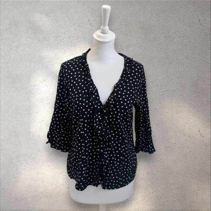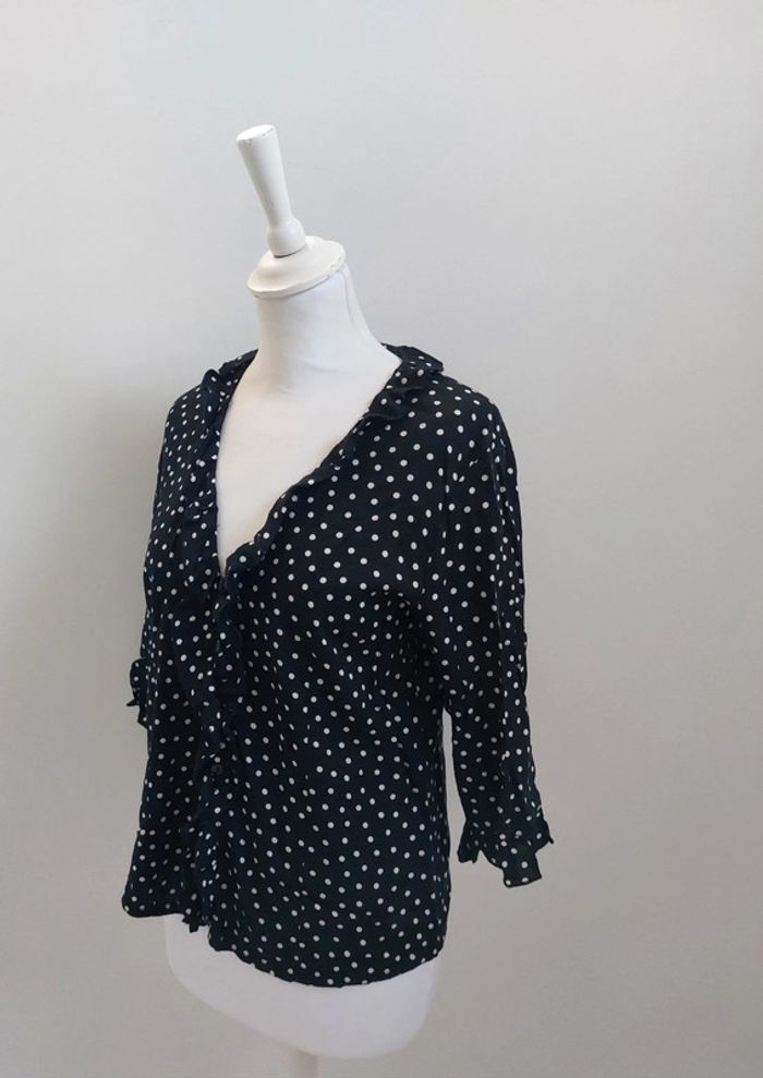 Chemisier fluide noir à pois blanc et froufrous taille 40 - photo numéro 1