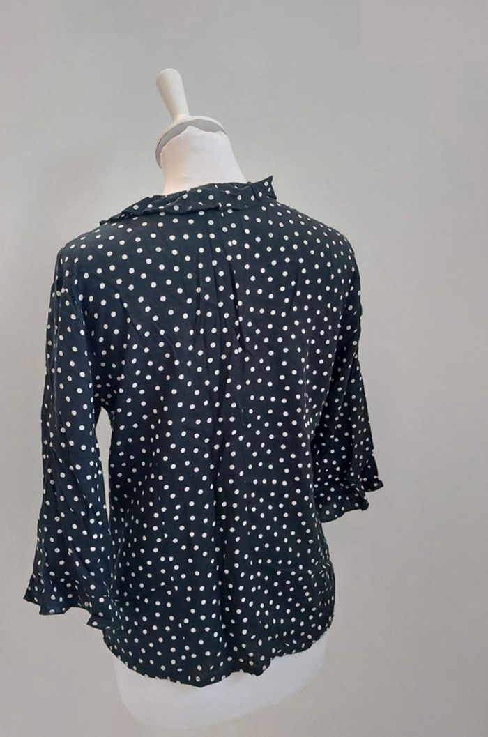 Chemisier fluide noir à pois blanc et froufrous taille 40