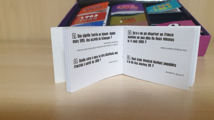 Quiz de 400 questions par périodes de 5 ans sur 40 ans : musique, cinéma, politique, etc. TB à excellent état.