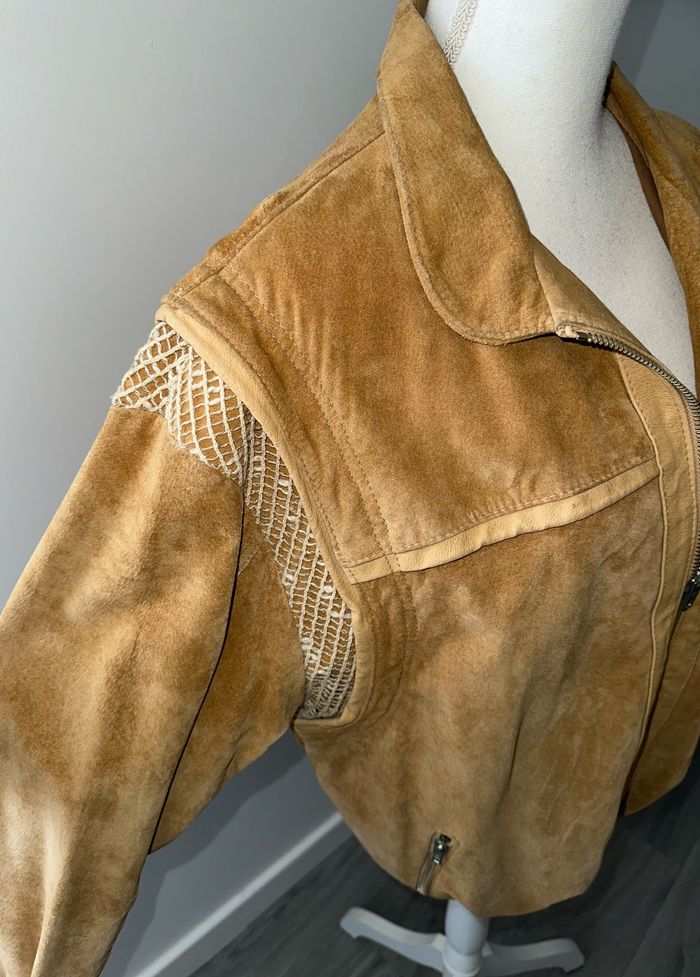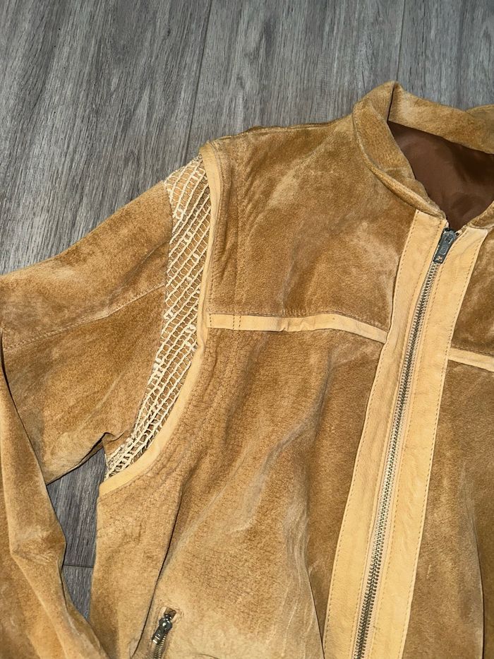 Veste perfecto bomber en cuir véritable camel Vintage T40/42 L/XL - photo numéro 4