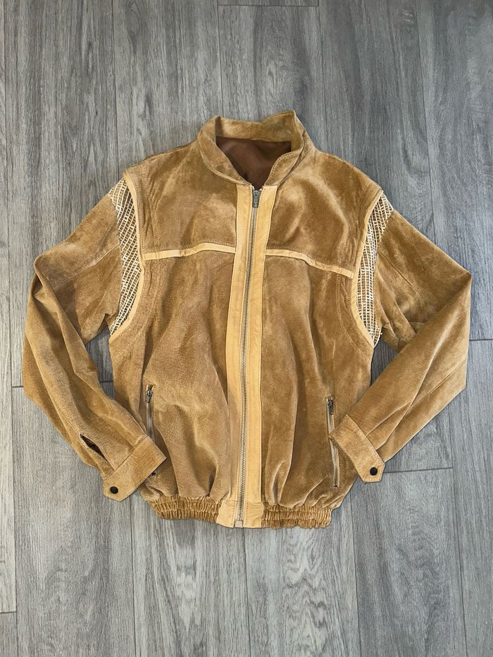 Veste perfecto bomber en cuir véritable camel Vintage T40/42 L/XL - photo numéro 2