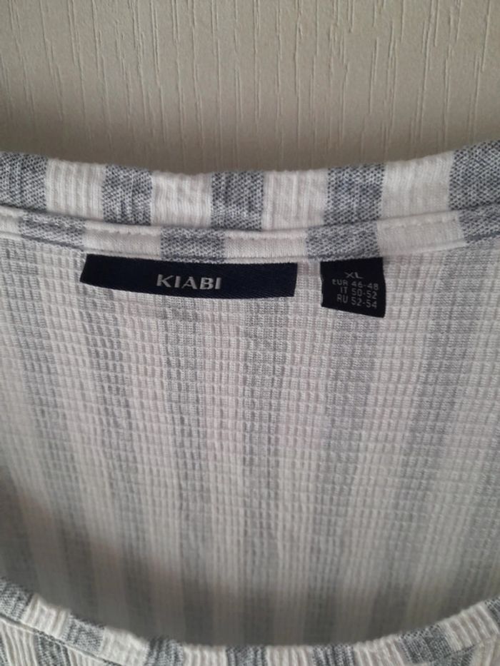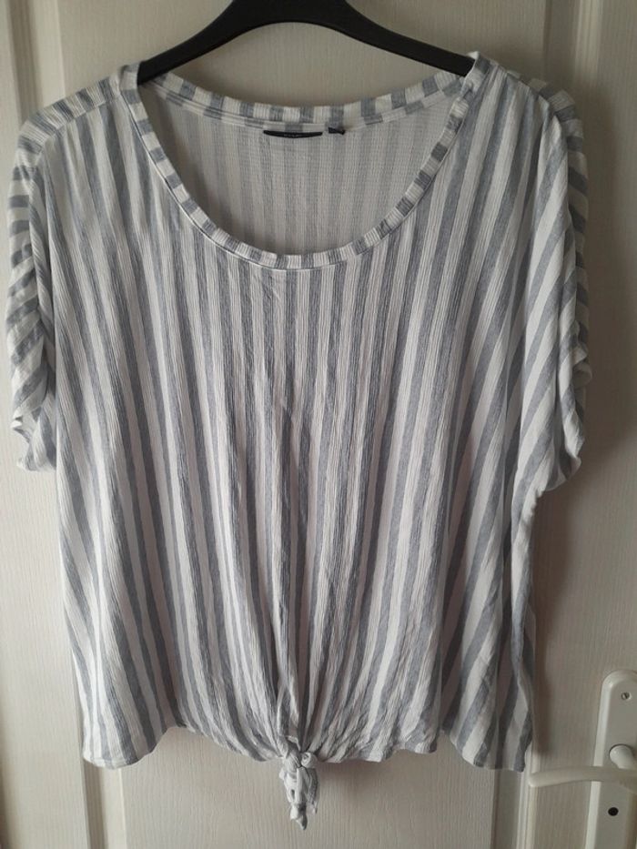 T-shirt blanc rayé bleu, nœud à faire dans le bas Très bon état Taille 46/48 #rachel62500femme4648