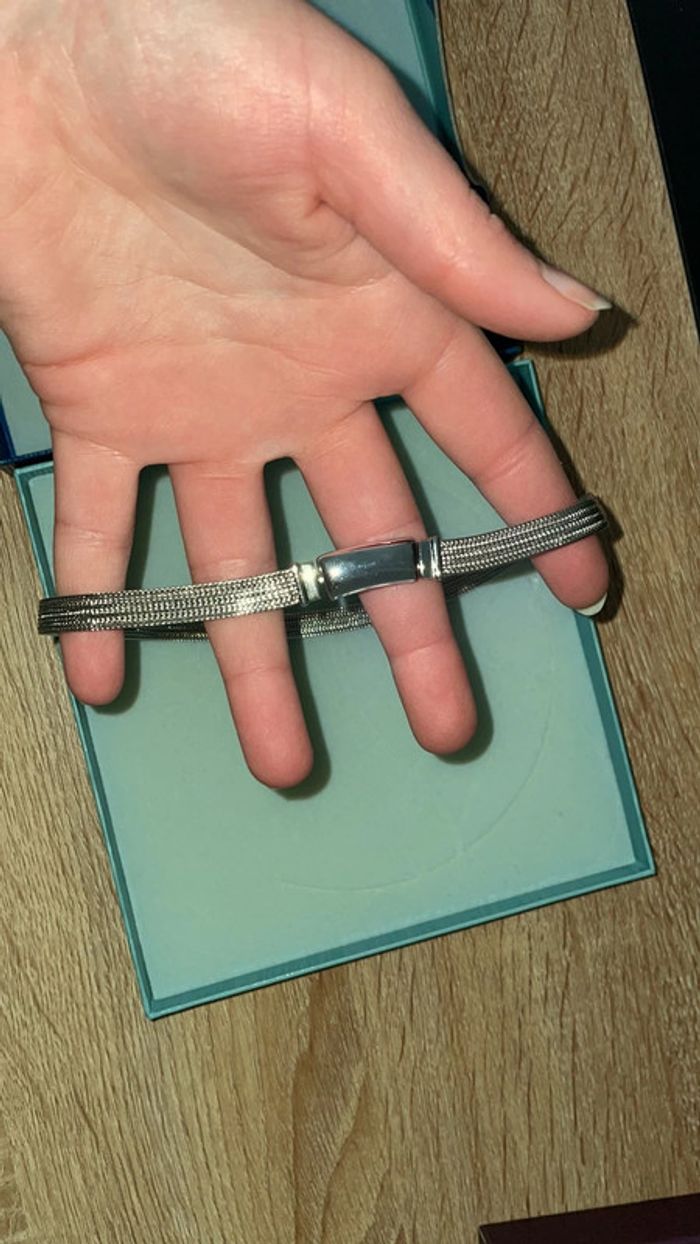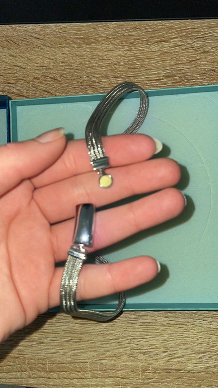 Mis quelques fois. il est resté dans sa boîte. Je ne sais pas de quelle bijouterie il vient. Celui-ci vient d’une personne âgée, mais je sais seulement qu’il a une valeur.