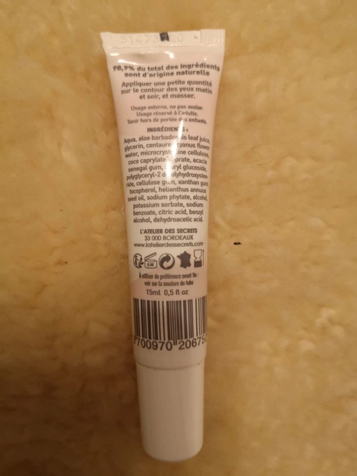 Soin sérum anti-fatigue contour des yeux enrichi en eau florale de bleuet, connue pour ses propriétés apaisantes et revitalisantes.