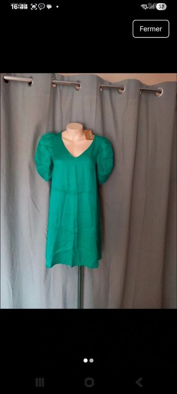 Robe asos en taille 34 d'une jolie couleur violet foncé portée lors d'un mariage. Elle est en très bon état, comme neuve. La robe est doublée, elle n'est pas transparente, elle a un décolleté en V assez profond devant et un semi dos-nu derrière. La matière de la jupe est très fluide ce qui lui donne un joli tombé.