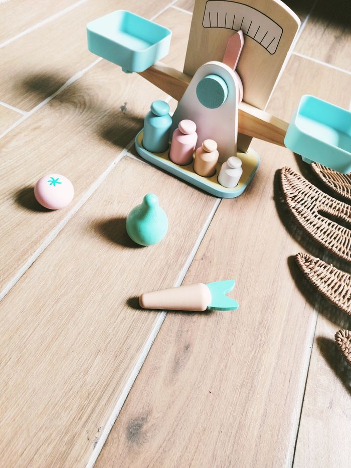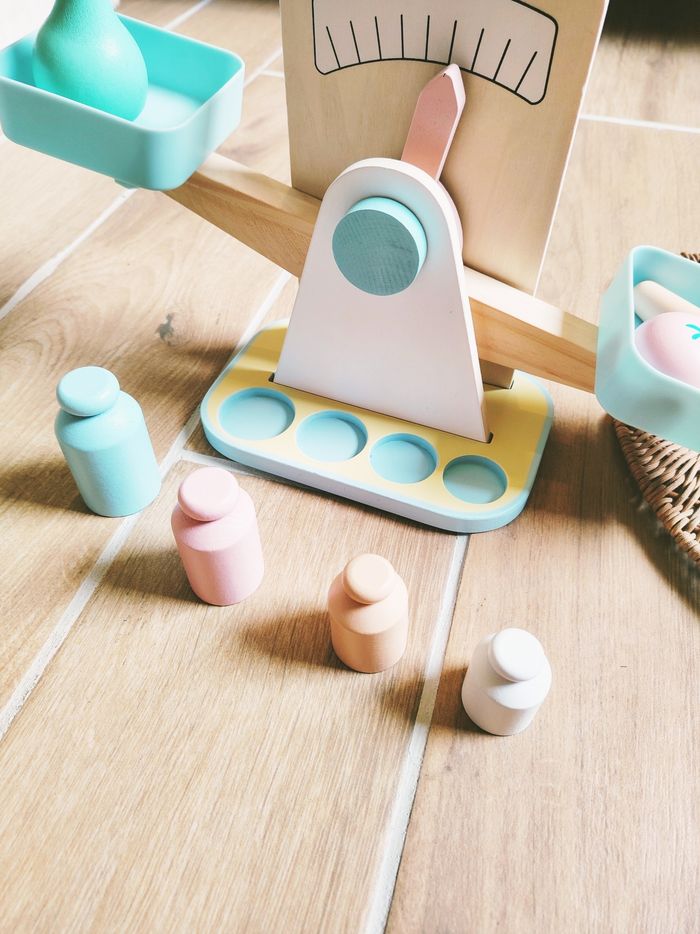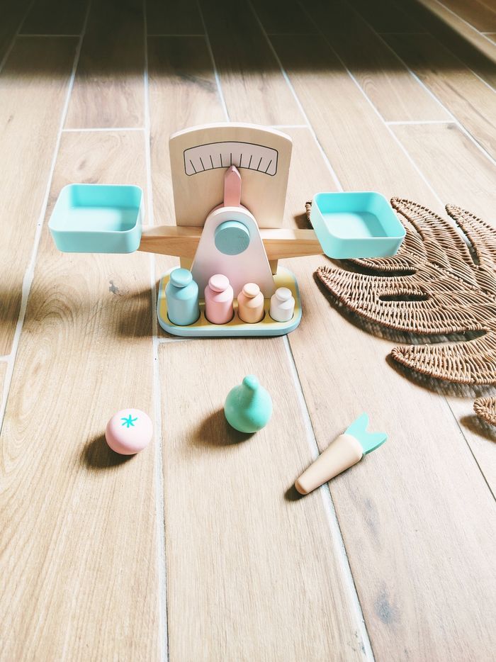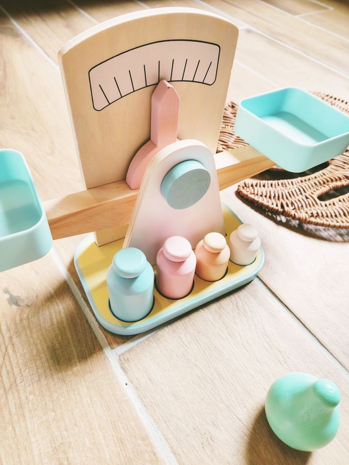 🍒 Balance de cuisine/ marchand(e) fruits et légumes en bois Montessori couleurs pastels - photo numéro 4