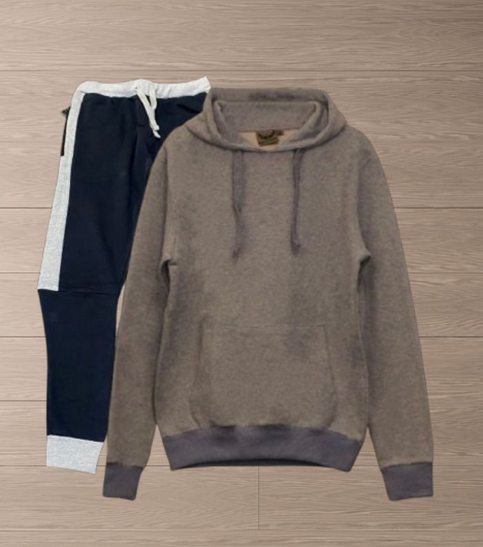 Survêtement XL Couleur : Bleu Clair Chiné pull / Bas Marine avec une contraste de gris clair Composition : 50% Coton 50% Polyester Jamais porté, tout neuf