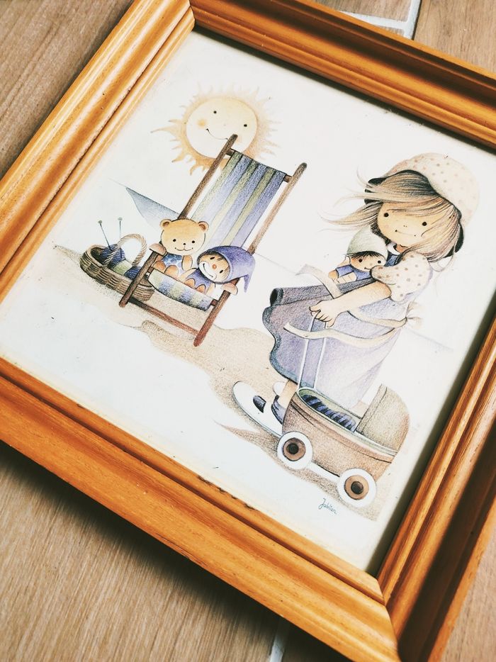 🖼️Lot de 2 cadres en verre et bois avec affiches petites filles années 70' vintage 🎀Jaklien Moerman illustratrice peintre belge 🎀Cadres très anciens comportent donc des traces d'usures voir photos ❇️N'hésitez pas à créer un lot pour économiser sur les frais de port❇️ Charlotte aux fraises, Strawberry shortcake, Sarah Kay