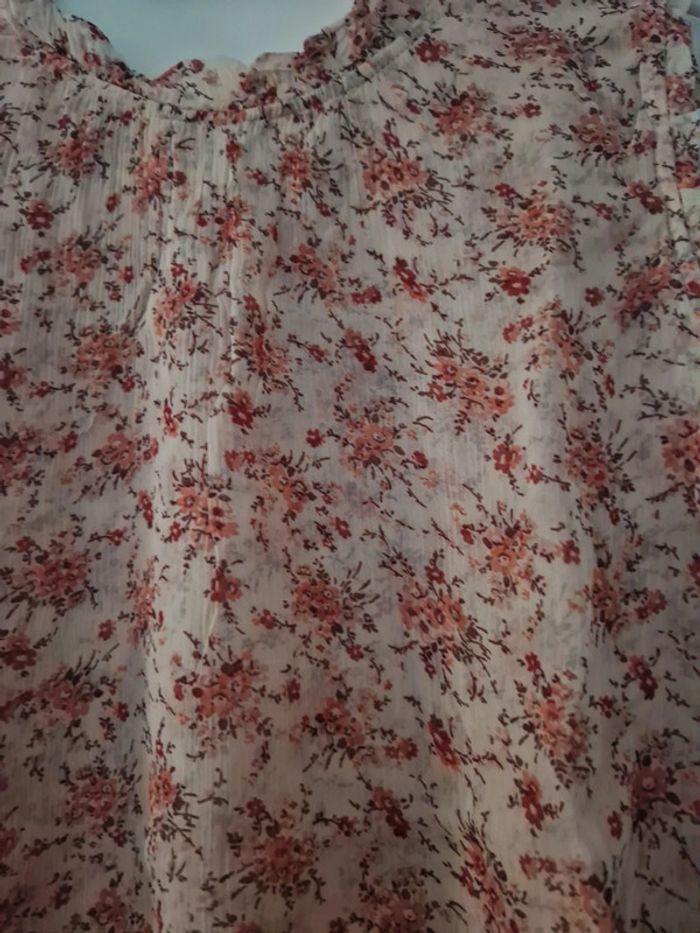 Blouse débardeur femme été rose motifs fleuris col taille unique TBE - photo numéro 2