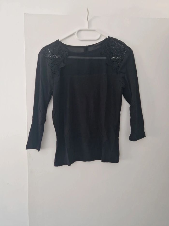 Pull fin femme manche 3/4 noir dentelle brodée TBE taille 36 IKKS women - photo numéro 1