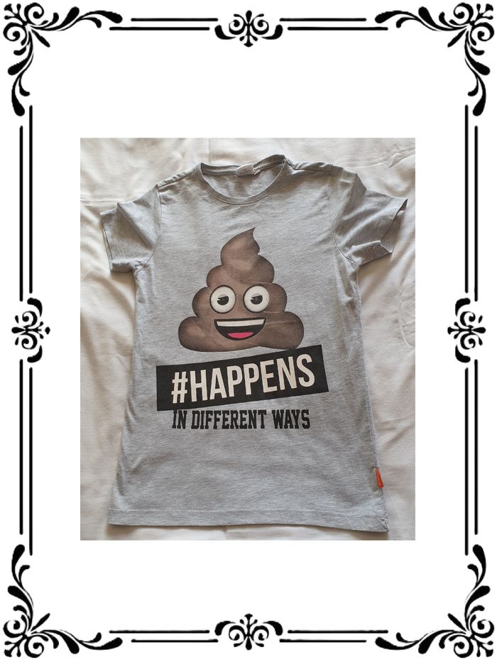 Tee shirt 11 ans (146/152). Tee shirt manches courtes gris clair. 65 % coton , 35 % polyester. Largeur aux épaules : 32 cm Largeur sous les bras : 38 cm Largeur en bas : 39,5 cm Longueur totale : 54,5 cm Longueur des manches : 15 cm En très bon état. Emoji. 2,00€. #vero38110onzeansfille
