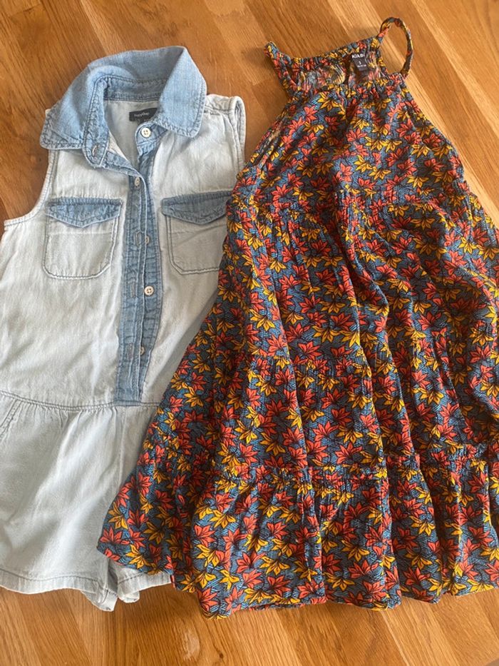 Lot composé: - d’un combishort en jeans fin, marque gap. Très bon état. - 1 robe ethnique fleurs très mignonne Kiabi. Taille 3 ans mais correspond à du 4 ans. Ma fille l’a adoré. N’hésitez pas à consulter mon dressing, des réductions s’appliquent en cas de lot.