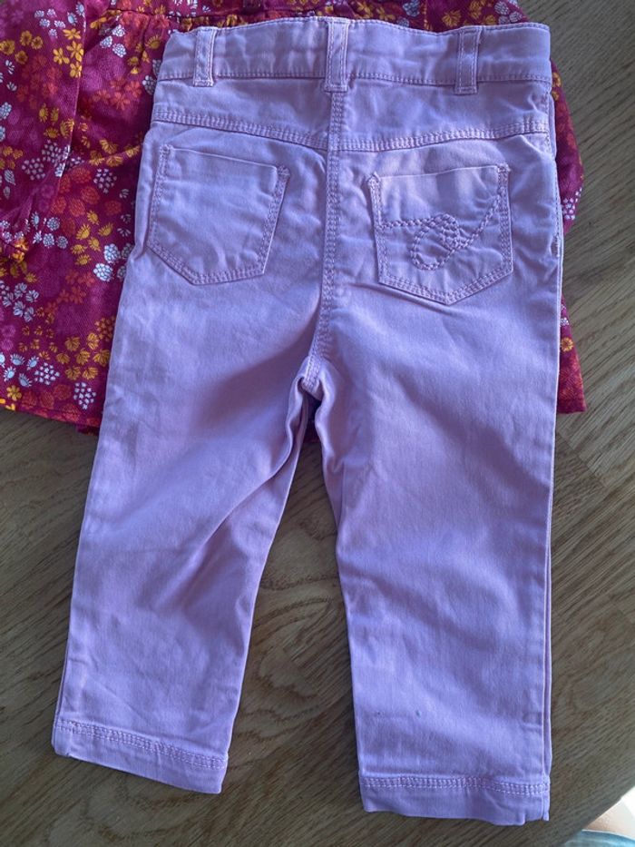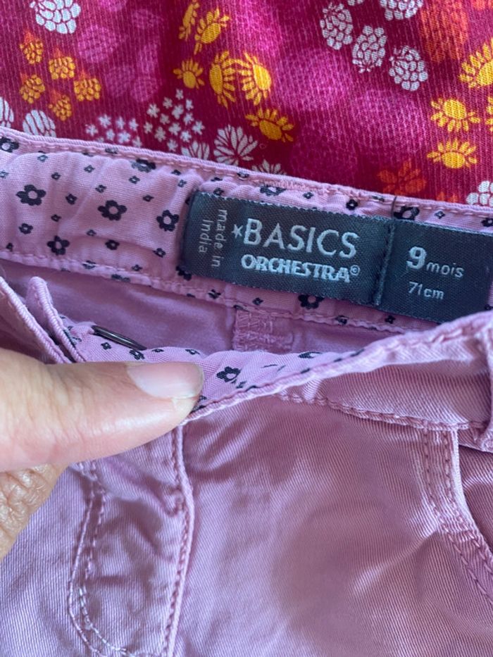 Taille 9 mois. Très bon état. Chemise / tunique doublée orchestra + jeans rose pâle orchestra. Très bon état. Des réductions s’appliquent en cas de lot.