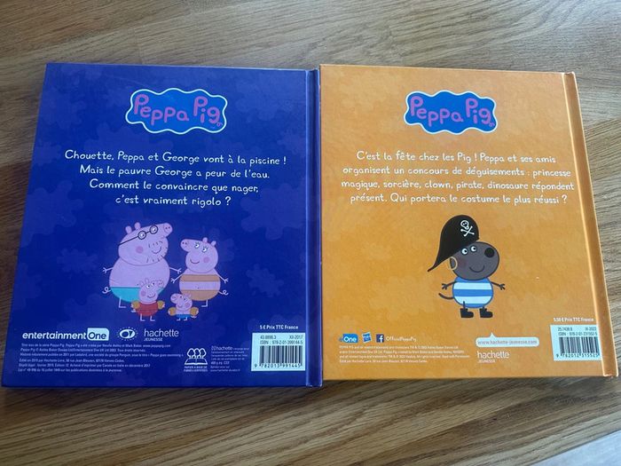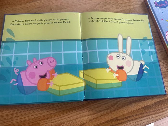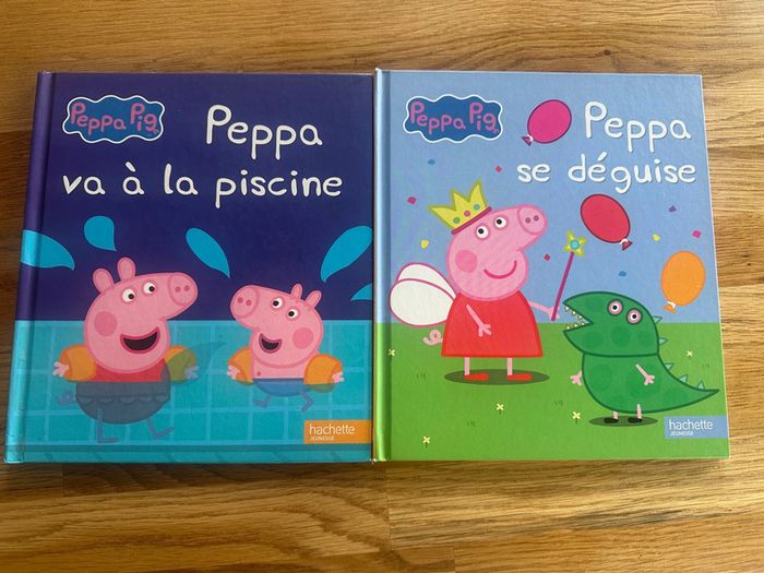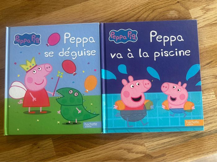 Peppa se déguise Peppa va à la piscine. Parfait pour vaincre la peur de l’eau. Livres reçus en double. Ma fille les adore. Très bon état. N’hésitez pas à composer un lot dans mon dressing, des réductions s’appliquent.