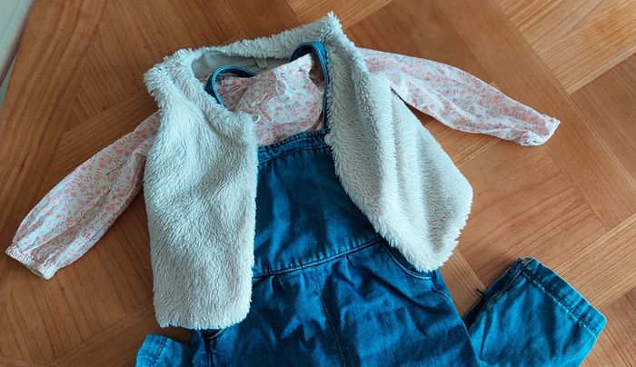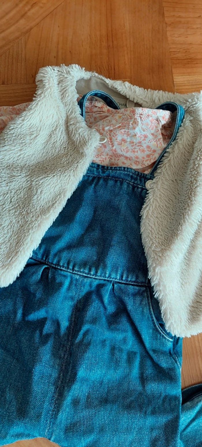 Salopette jean 18 mois TAO Blouse 18 mois TAO Gilet sans manche fourrure 18 mois Bouchara