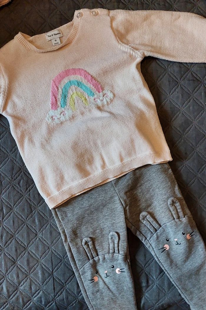 Pull arc-en-ciel pat et ripaton 18 mois bon état Legging lapin h&m 80cm très bon état