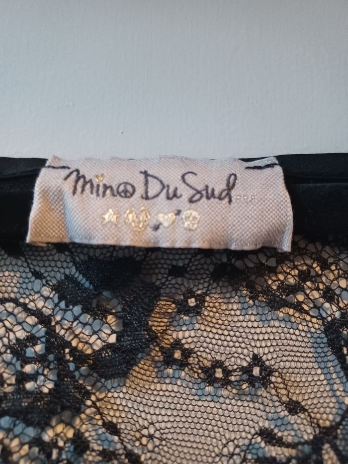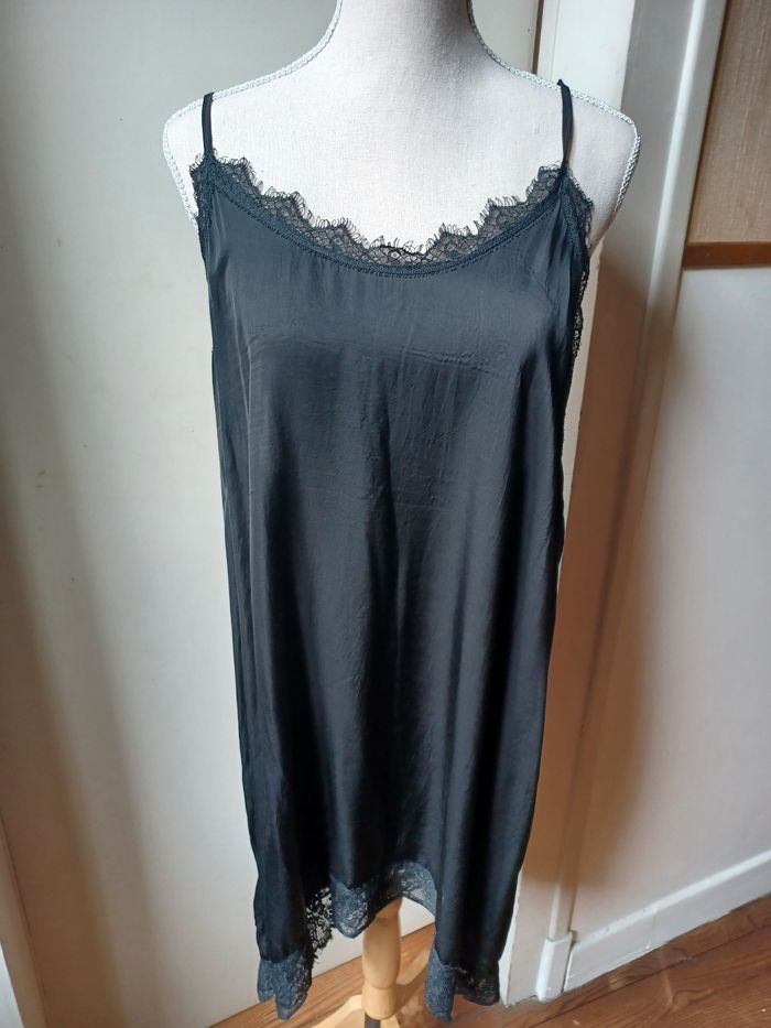 Caraco lily avec fines bretelles réglables ,effet satin, dentelle au dos, à l'encolure et en bas. Neuf. Taille 3 (46/50) Marque MinoDuSud