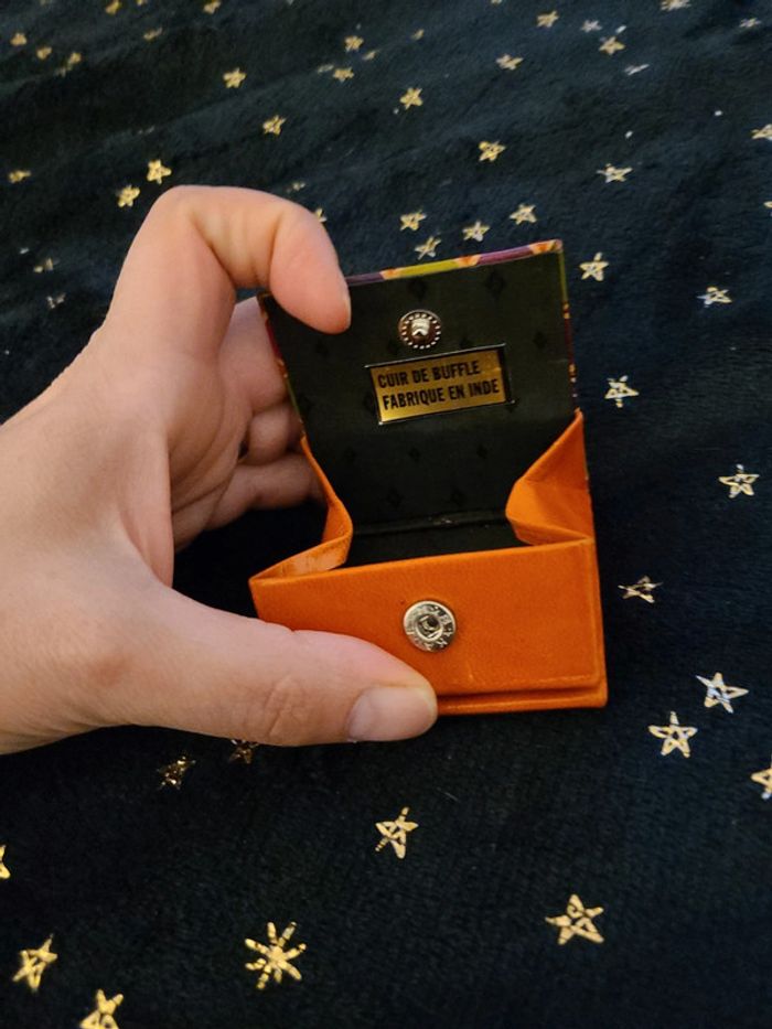 Porte monnaie orange cuir d Inde - photo numéro 2