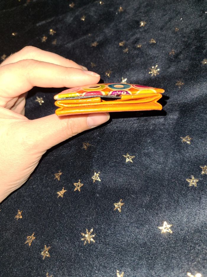 Porte monnaie orange cuir d Inde - photo numéro 5