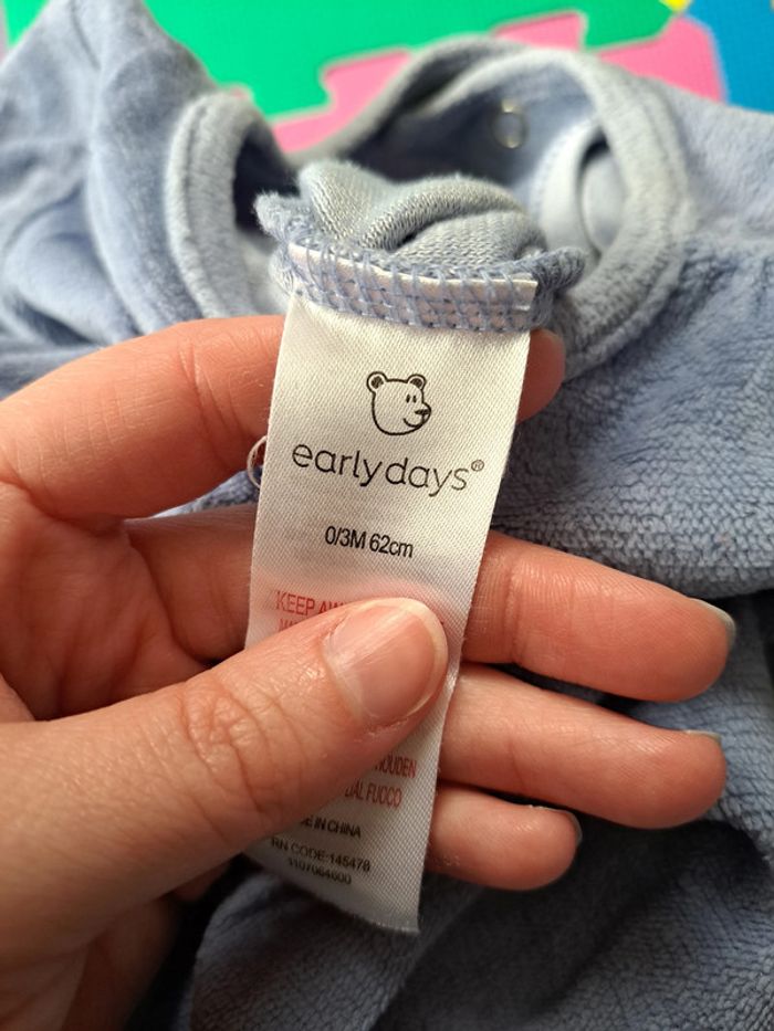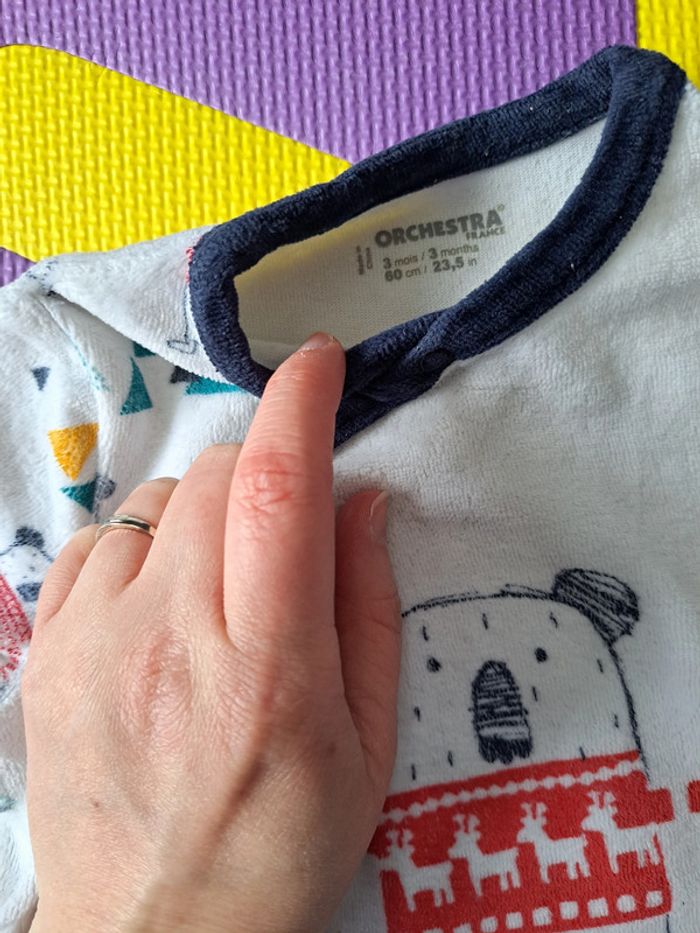 Afin de pouvoir financer les frais paramédicaux de nos enfants, j'offre une seconde vie à notre dressing. Merci de bien regarder les photos et lire la description : Lot de 4 pyjamas velours, ouvertures sur le devant, en taille 3 mois : • Pyjama Carrefour rouge et gris, présence de peluches au niveau du motif • Pyjama bleu Earlydays, motifs étoiles craquelées • Pyjama Orchestra blanc • Pyjama Carrefour marron motif paresseux Beaucoup portés mais peuvent faire le bonheur d'autres enfants à petits prix. -> Les articles sont stockés dans des sacs sous-vides et peuvent être froissés -> RMP possible dans le département 54 / proche 88 (plus de précisions dans mon profil) 5ga