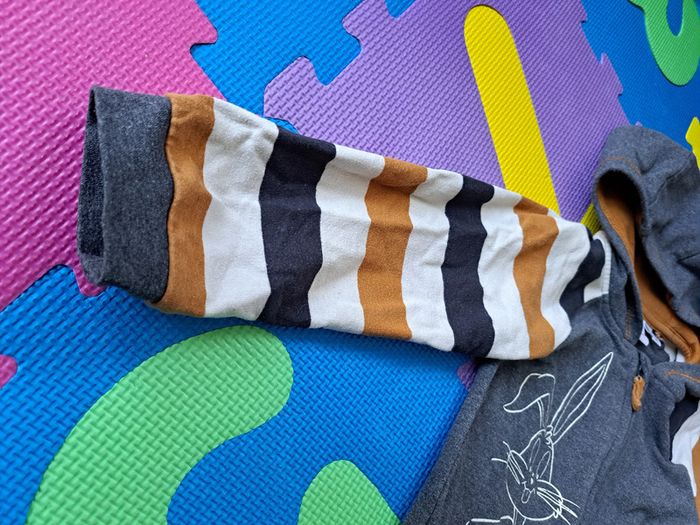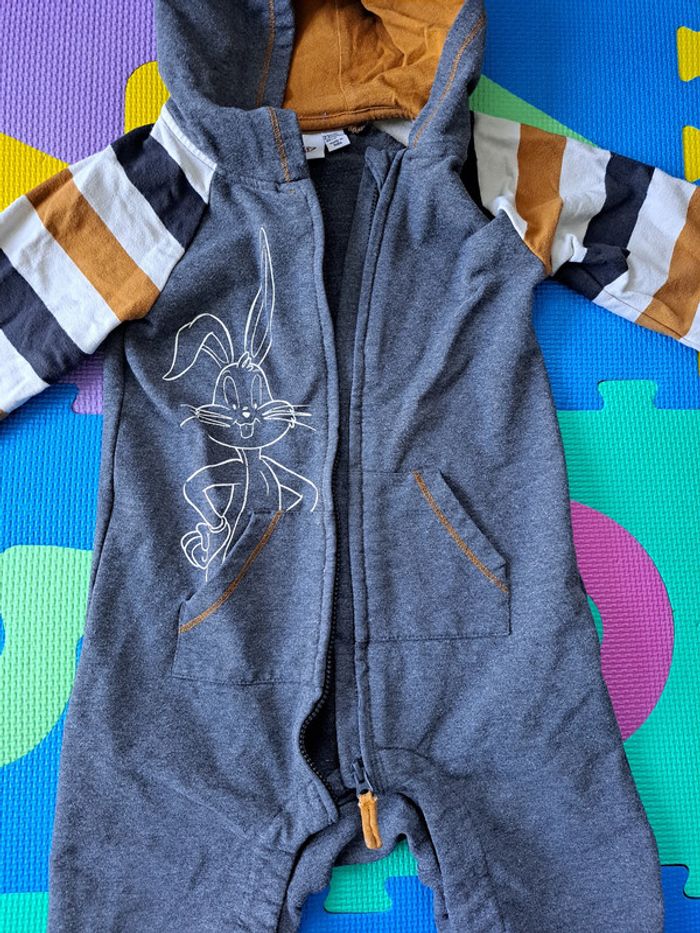 Afin de pouvoir financer les frais paramédicaux de nos enfants, j'offre une seconde vie à notre dressing. Merci de bien regarder les photos et lire la description : Combinaison sans pieds, Looney Tunes, taille 23 mois. Ouverture par zipette + boutons pressions à l’entrejambe pour faciliter le changement de couches. Beaucoup portée : quelques bouloches et motif Bugs Bunny craquelé, visible sur les photos. -> Les articles sont stockés dans des sacs sous-vides et peuvent être froissés -> RMP possible dans le département 54 / proche 88 (plus de précisions dans mon profil) 89ga