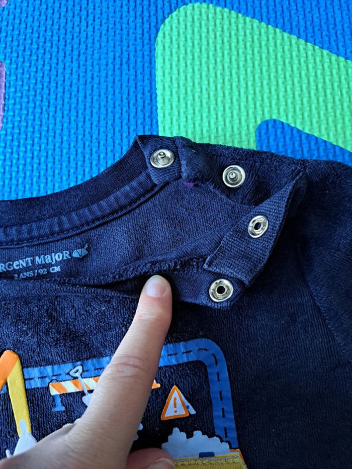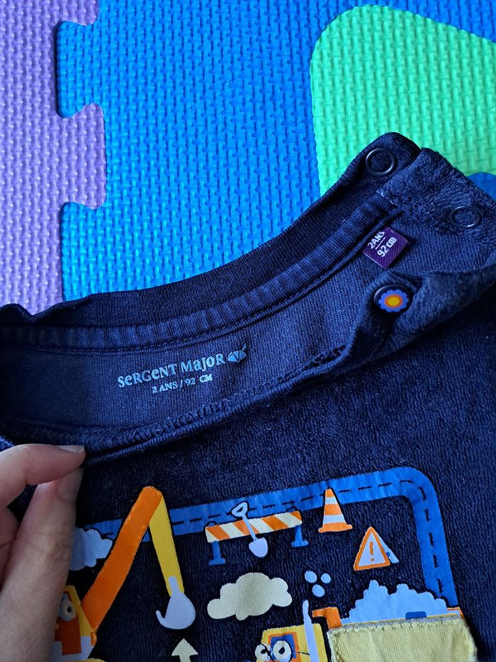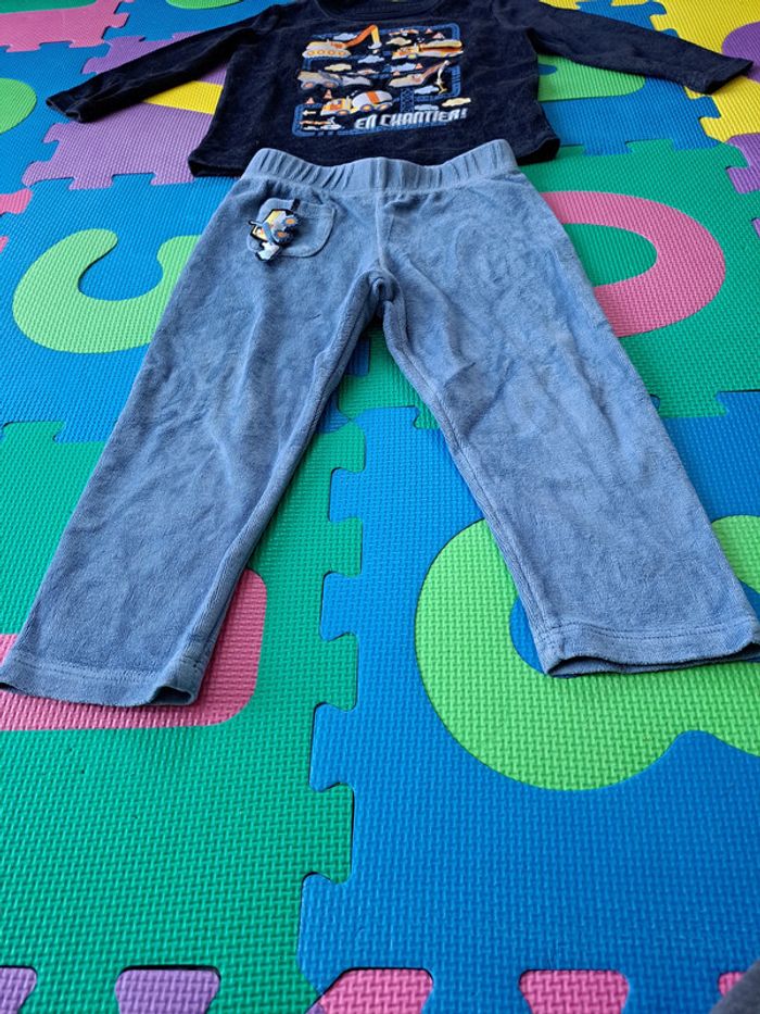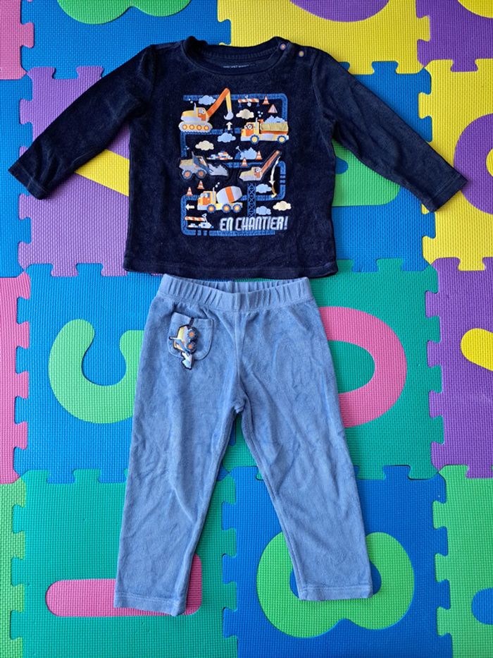 Afin de pouvoir financer les frais paramédicaux de nos enfants, j'offre une seconde vie à notre dressing. Merci de bien regarder les photos et lire la description : Pyjama Sergent Major, en 24 mois. Deux pièces, en velours. Motifs chantier, tractopelle, camions, ect… A été beaucoup porté. Quelques défauts à noter : Le motif est un peu passé à certains endroits, visible sur les photos. Présence d’une tache que je n’ai pas réussi à faire partir au lavage, à l’arrière du pantalon (voir photos). Il peut encore faire le bonheur d’un autre petit gars fan de camions de chantier ! -> Les articles sont stockés dans des sacs sous-vides et peuvent être froissés -> RMP possible dans le département 54 / proche 88 (plus de précisions dans mon profil) 83ga