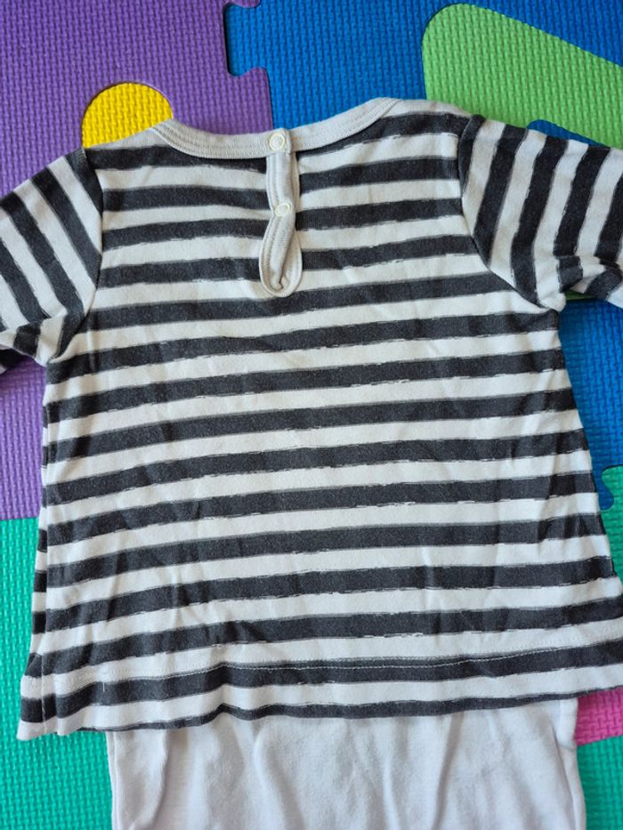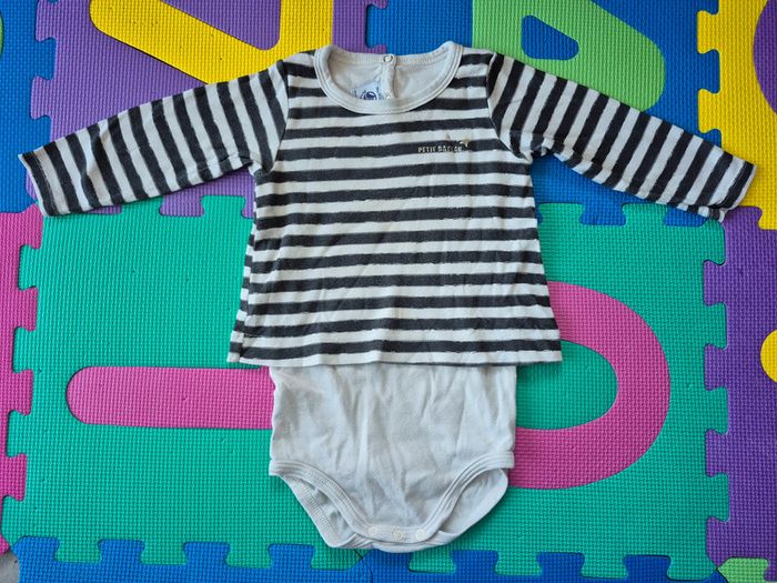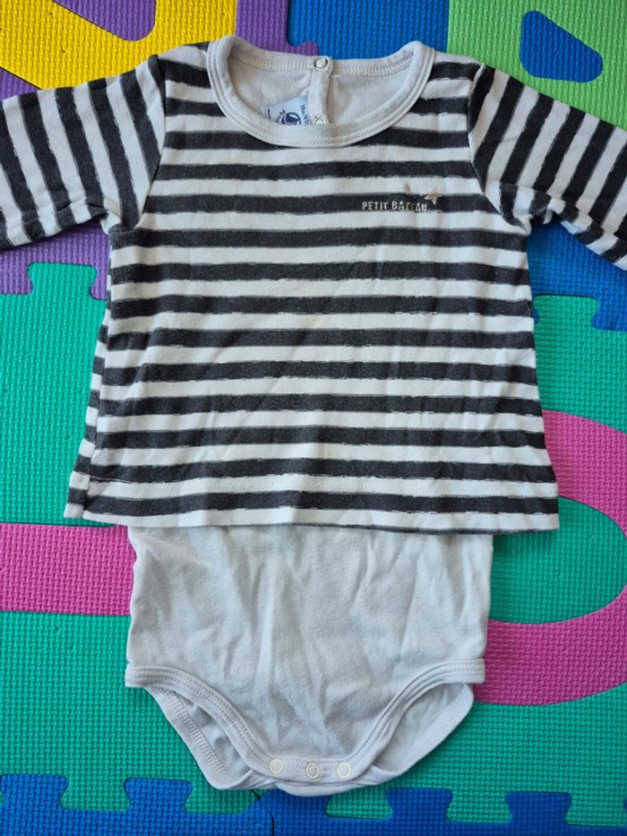 Afin de pouvoir financer les frais paramédicaux de notre fille, j'offre une seconde vie à notre dressing. Merci de bien regarder les photos et lire la description : Body guimpe Petit Bateau Trompe l’œil : le haut est intégré au body, parfait pour porter avec un pantalon! Taille 18 mois. Bien porté mai reste en bon état. -> Les articles sont stockés dans des sacs sous-vides et peuvent être froissés -> RMP possible dans le département 54 / proche 88 (plus de précisions dans mon profil) 74ga