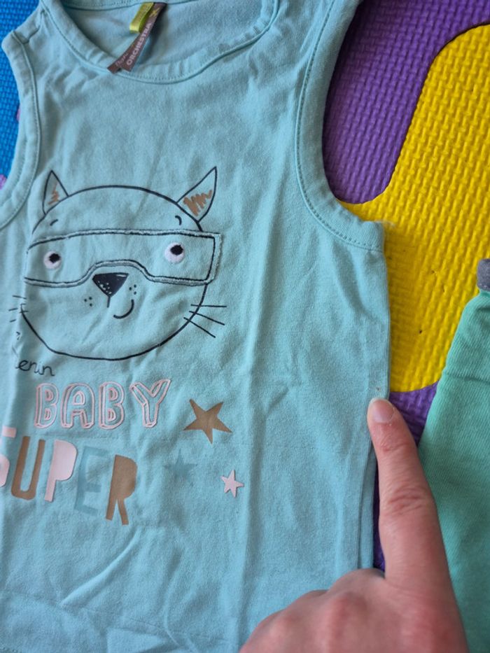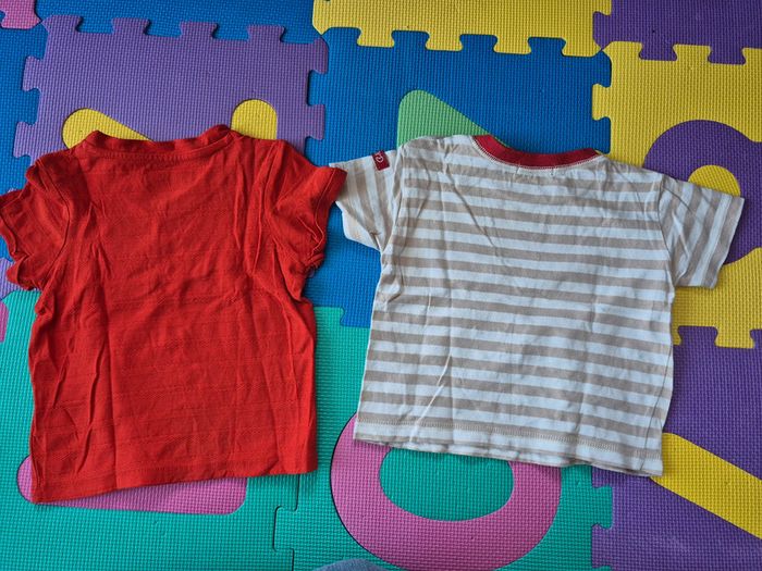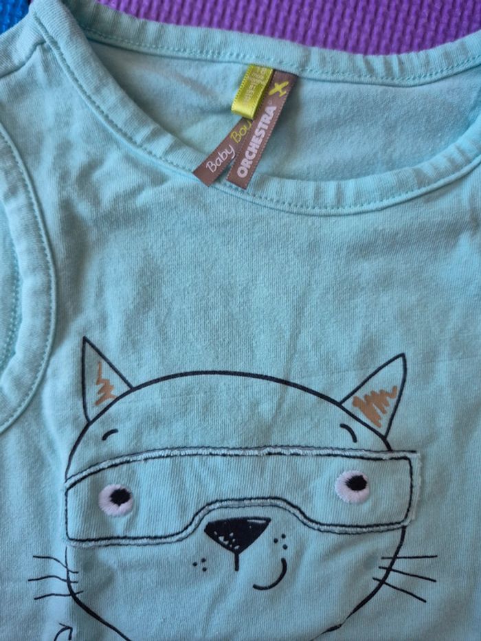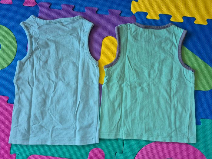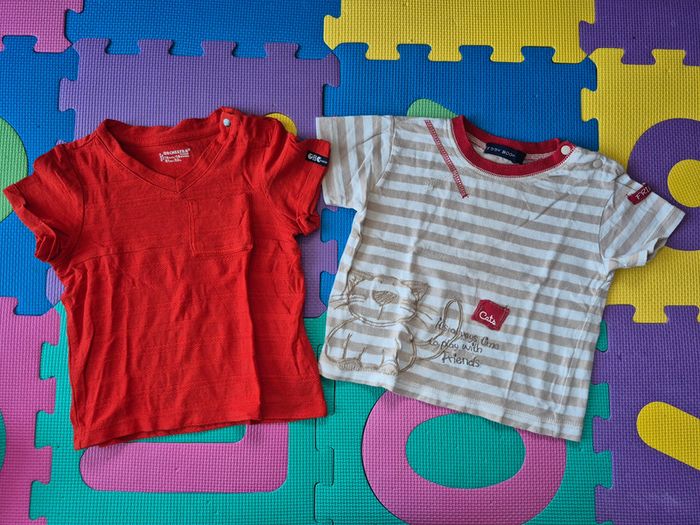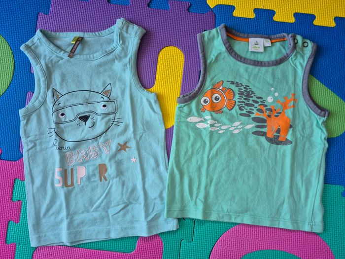 Afin de pouvoir financer les frais paramédicaux de notre fille, j'offre une seconde vie à notre dressing. Merci de bien regarder les photos et lire la description : Lot de 7 hauts manches courtes, taille 18 mois en bon état : - T-shirt Orchestra rouge col V - T-shirt Creeks bleu turquoise, « Little Mister Surfer » - T-shirt beige et rouge Teddy Boom, motif chat - T-shirt Orchestra, motif guitare - T-shirt Kiabi rayé bleu et blanc - Débardeur bleu Orchestra, bon état, petit point sur le côté. - Débardeur Disney Baby, motif Némo (motifs passés, voir photos) -> Les articles sont stockés dans des sacs sous-vides et peuvent être froissés -> RMP possible dans le département 54 / proche 88 (plus de précisions dans mon profil) 70ga 70ga