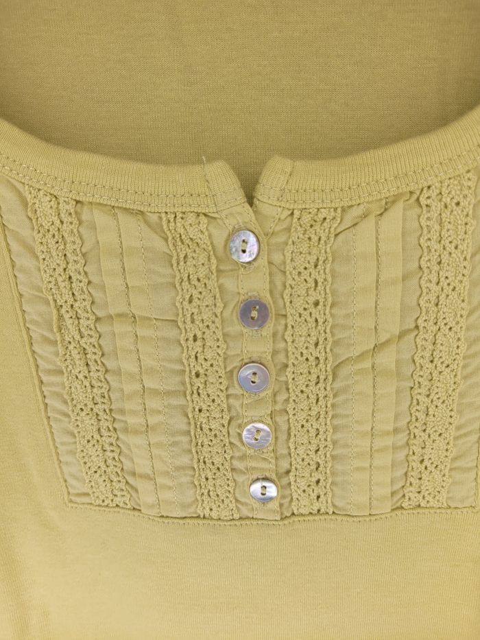 Débardeur vert anis Boutons nacrés Pas d'étiquette de composition et de taille Taille 42/44 Dimensions à plat sous les aisselles : 48 cm Longueur totale de l'épaule au bas : 65cm Réductions activées sur les lots ↘️ ✅️ 🤑 #taille42sofi1804 #taille44sofi1804 #teeshirtsofi1804