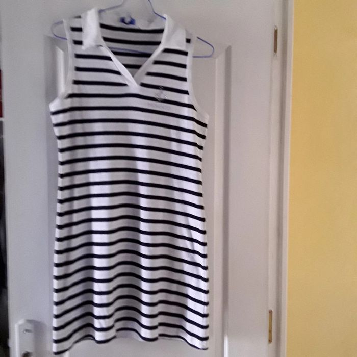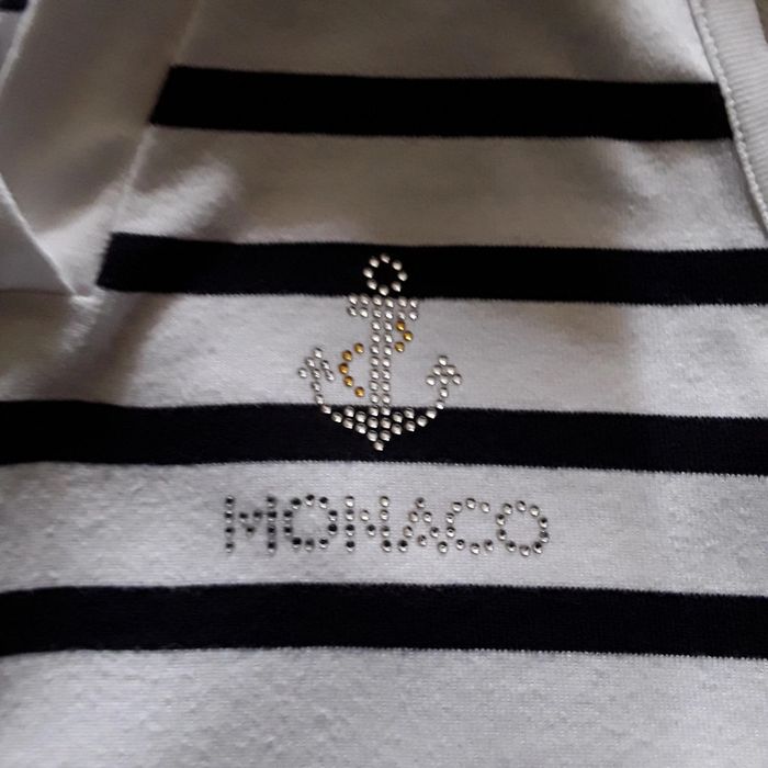 100% coton Avec col façon polo Notée XXI sur l'étiquette mais correspond à 38/40 Longueur genou ou au-dessus Logo monaco Portée