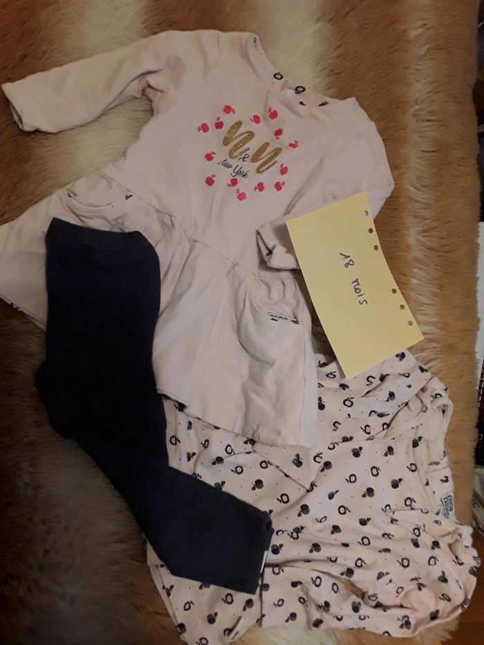 Ensemble t shirt + robe + legging bébé fille 18 mois - photo numéro 1