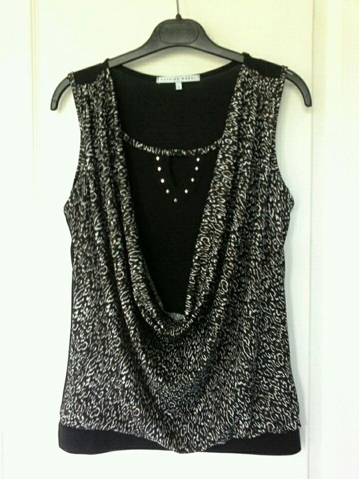 Tunique noire avec partie tissu léger par-dessus avec motif taille 38 - photo numéro 2