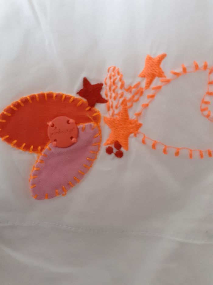 Robe fille été de marque Jean Bourget ; Taille 23 mois ; Ton blanc et orange ; En très bon état