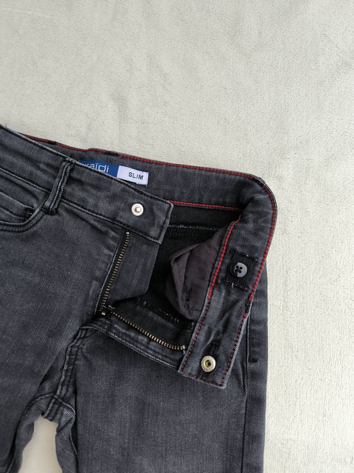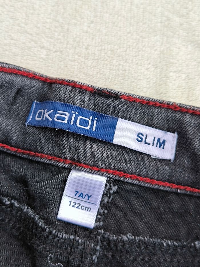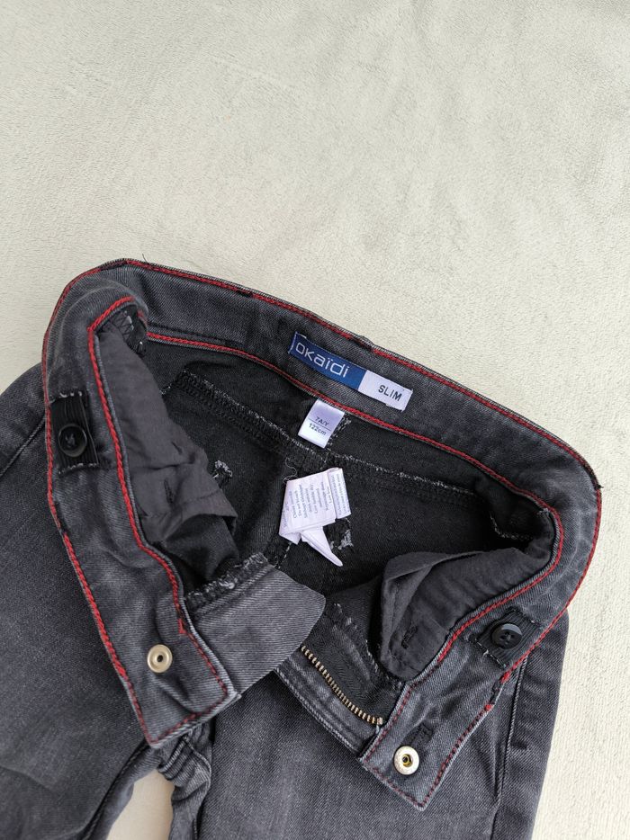 Pantalon Marque Okaïdi Taille 7 ans, 122 cm • Coloris gris, noir • Coupe slim • Fermeture par fermeture éclair et pression • Taille élastique ajustable • 4 poches En très bon état #evelyne_garcons_7ans #evelyne_garcons