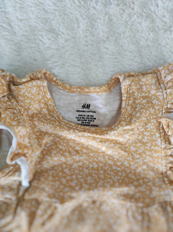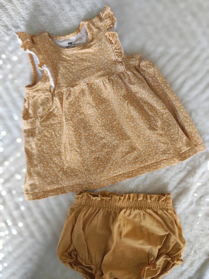 Robe moutarde et blanche en 9 mois. Avec culotte moutarde. Marque h&m. En parfait état #H&M #9mois