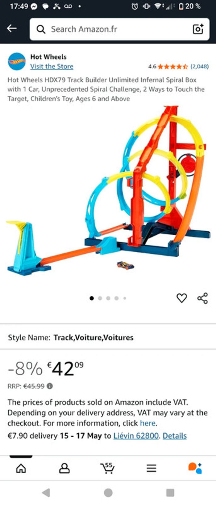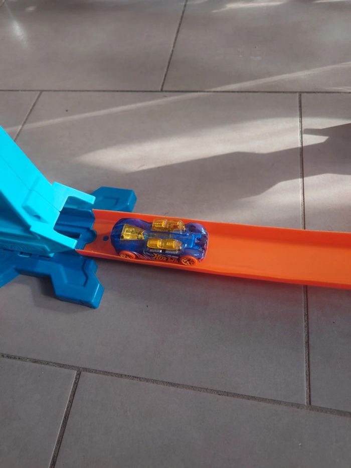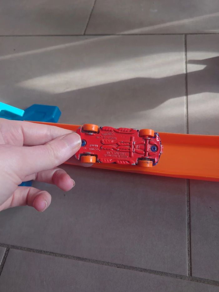 #chapitijouets Juste la voiture qui a été utilisée Et nous avons testé le circuit une journée ou deux mais vite remballé car fils n'a pas reussi à appuyer sur le bouton pour lancer la voiture du haut de ses 3 ans Il est complet Vendu sans boîte
