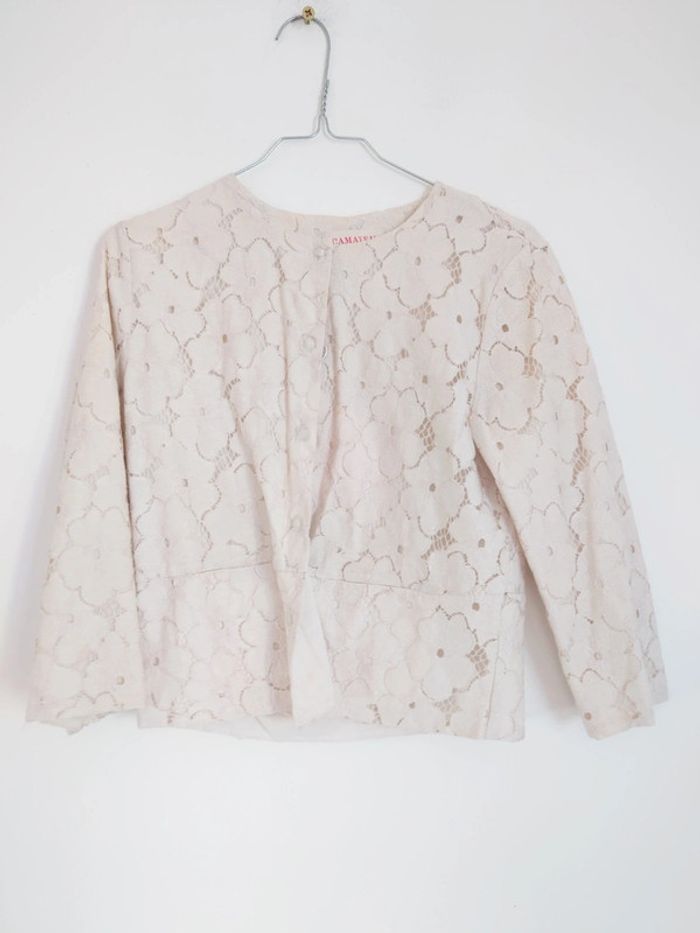 #chapitifemme36 Joli gilet blanc floral porté pour les évènements taille 36 Petite tache sur le devant cf photo d'où le prix