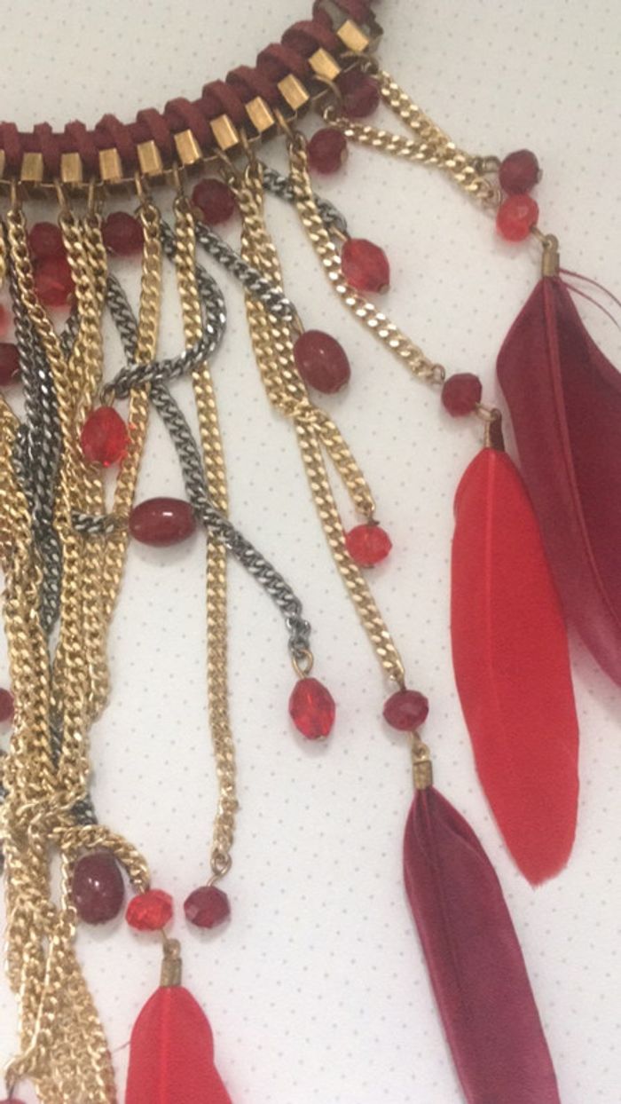 Collier plastron à plumes rouge et bordeaux - photo numéro 1